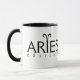 Perfekt mugg för Aries. Utformningen omfattar ord Aries med astrologiska tecken för Aries och ord. Symbolen Aries, eller tecknet, skildrar ramet. Underbar födelsedagspresent för människor födda i mars eller april.