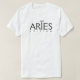 Perfekt-skjorta till Aries. Utformningen omfattar ord Aries med astrologiska tecken för Aries och ord. Symbolen Aries, eller tecknet, skildrar ramet. Underbar födelsedagspresent för människor födda i mars eller april.