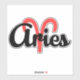 Astrology Sign Aries with black font and red symbol to represent Aries element of Fire. Astrology signs depict the star's alignment at every person's birth and influence personality and the world around us. Astrology Signs with black or white font and green, red, blue, or yellow symbol to represent the elements of Earth (green), Fire (red), Water (blue), Air (yellow). Astrology signs depict the star's alignment at every person's birth and influence personality and the world around us.