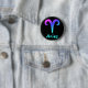 Aries astrologisymbol runda eller med kvadratiska knappar stift, glansig svart bakgrund, häftar in rammärket i blått lila magenta nyans. Lycklig välsignelse från Lycklig Wishing well dot com.