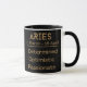 Det här Aries horoscope-kaffet mugg är perfektens sätt att fira ditt tecken. Mugg har en svart bakgrund med guld typografi, Aries symbol (ram) och en lista över Aries traits och Zodiac data. Perfektens gåva till alla typer av flygresor. För andra färg eller liknande produkter, gå till https://www.zazzle.com/store/charnellescanvas eller kontakta designern, charnellescanvas@gmail.com. #zazzlemade