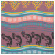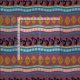 Hand plockade Kokopelli och sydvästra Native American Mönster i plum, guld och turkos.