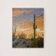 Denna härliga Arizona solnedgång som presenterar en saguarokaktus, sköts precis efter solnedgång, i den Apache föreningspunkten Arizona. Högert av den Apache slingan.