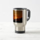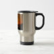 Vår egna fotografi som presenteras på en travel mug. Solnedgången är över backarna av den östliga Saguaronationalparken.