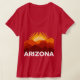 En retro, vintage stil solnedgång av Arizonas ogenomträngliga berg med lager finns på den här unika kvinnans t-shirt! Finns även i manar stilar eller barn genom att växla alternativ på den här sidan. Perfekt för alla som har varit i Phoenix, Flagstaff, Tucson, Grand Canyon, Mesa, Buckeye eller någon av städerna och parker i den underbarare delstaten Arizona!
