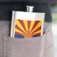 Arizonaflaggan, ett levande bevis på statens unika landskap och rika historia, berättar en historia om kontrasterande skönhet och varaktig styrka. Dess design, ett mästerverk av enkelhet och symbolism, fångar essensen av Grand Canyon-staten. - Flaggans övre halva domineras av en slående display av tretton alternerande röda och gula strålar, som påminner om en solnedgång. Dessa strålar hyllar de tretton ursprungliga kolonierna, samtidigt som de frammanar de hisnande solnedgångarna som målar Arizona-himlen med guld- och karmosinröda nyanser. De röda och gula färgerna är en hälsning till det spanska arvet som format regionen, och påminner om flaggorna som bars av upptäckare som Coronado. - Under den strålande