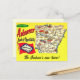 Färgglatt vintagepostkort kartan över delstaten Arkansas återanvänt som ett nytt vykort för att tillkännage ett nytt hem, ny adress, eller?