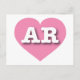 Detta vykort har ett rosa i coola som innehåller den feta, vita, övre brev AR i fodral, förkortningen officiell för Arkansas, det naturliga tillståndet. Kortets baksida är tom och väntar på dina handskrivna känslor eller anpassade texter.