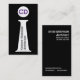 Arkitekt-abstrakt affärskort svart, lila och vitt affärskort, markerar en vit spalt på svart bakgrund, en cirkel ovanför spalten med ditt monogram/initialer i lila och din text. Ändra text och lägg till logotypen.