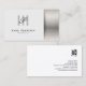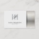 Affärskortet för arkitektoniska professioneller har en elegant silver-dammbakgrund på kortets höger. Monogrammet brev visas i ett elegant-skriptteckensnitt över en enkel silver-bakgrund med kvadratiska bokstäver. Ditt namn och din titel ljuger under monogrammet brev, över en svartvit färgad bakgrund. Designad för professionellens handelskunskaper, handelskunskaper, konstruktion, byggnad, hemförbättring, reparation, reparationer, silver, krom, damm, professionell, monogramteman.