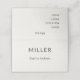 Detta arkitektoniska bröllopsplatskort och meny har en raffinerad minimalistisk layout med en fet efternamnsrubrik och strukturerad typografi.
