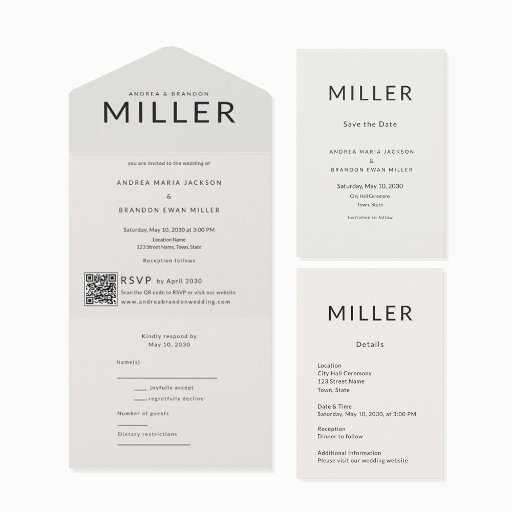 Detta arkitektoniska tack-kort för bröllop har en fet efternamnsrubrik och en raffinerad minimalistisk layout, designad som ett modulärt efterbröllops-kort.