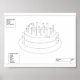 Arkitektur teckning av en födelsedagskalas i stil på byggnad- eller blåtrycksplanerna. Teckning skapades i AutoCAD. Bra för en arkitekt eller ingenjör.