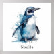 Arktisk Azure Watercolor Penguin, anpassningsbar Poster