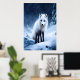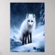 En vit Arktisk räv som står i snö under snöväder i berget. Det här är en AI-skapad konst.