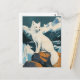 Fånga Arktis friska skönhet med det här vykortet vintage-stil som har en graciös arktisk räv. Med sitt pristina vita päls och piercing ögon ställs räven mot en snöliknande isig, vilket väcker den tysta majoriteten av dess nordliga livsmiljö. Perfekt för samlare, djurentusiaster eller som säsong hälsning firar detta vykort det arktiska naturlivets tidlösa charm.