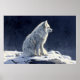 En underbar vit arktisk räv sitta i ett snövall, en serenscen som fångas i en oljemålning på en pikturesk poster.