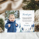 Våra arktiska djur födelsedag Foto-tackkort är ett charmerande sätt att visa tacksamhet till gäster som firade en liten speciell dag. Kortet har ett lekfullt arktiskt tema med ätliga djur som björnar, pingviner och rävar, omgivna av snölandskap. Mjuk pastellform färg som ljusblått, vitt och färgade silver skapar en mysigt, vindrutetänk. Ett litet foto på personligen av födelsedagsbarnet ger en söt, personlig beröring. Kortets budskap är varmt och enkelt, skapar det perfekten för att du säger "tack" i stil, som fångar magin från en första födelsedag i Arktis!