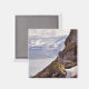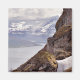 Sent Vår i Tromsø, Norge. Dramatisk syn på branta snöberg som möter isig vatten i Arktiska havet och skapar farlig och vacker som kallas fjord.