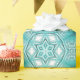 En slående turkos och vit kaleidoskopisk design som har en skarp geometrisk mönster, vasst linjer och symmetrisk stjärnliknande form. Den här djärva och moderna abstrakten av teckningar blandar coolans isig med dynamiska detaljer som skapar en biet-perfekt som är synligt fängslande för heminredning, kläder eller tillbehör.