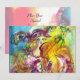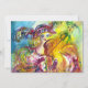 Färgglad, nyckfull och livfull akvarellmålning i ljust gult, lila, blått inspirerad av karnevalen i Venedig .Arlecchina är kvinnlig motsvarighet till Harlekin