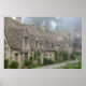 Poster utskriften av Arlington Row, honungsvävar-färgader i dimma i staden Bibury, Cotswets i England, Storbritannien.