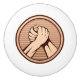 Bronze runt medalj med två händer i arm brottning.
