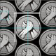 Silver medalj med två händer i brottningen i arm. Anpassningsbarnas bakgrund färg.