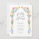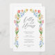 En arkivsamling av vår blommor omger dina bröllop-detaljer i denna färgstarka design.