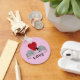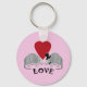 Dessa söta nyckelringar har ett armadillopar under ett hjärta som tittar över ord "Kärlek" i ett roligt på en ljus rosa bakgrund.