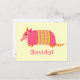 Cute rosa and gult armadillo på vykort. Köp dig som du kan anpassa meddelandet.