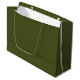 En mörk, solid färg "ArméGrönt" Large Gift Bag. Arméns Grönt är en djup gult-grönt. Klicka på "Anpassa" om du vill ändra färg eller lägga till ett mönster eller en design. Produkthexkod: #4b5320