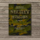 Titeln på inbjudan inspirerades starkt av den militära stridsstyrkan typsnitt för att gratulera Camouflage-konstruktionen. Camouflage-konstruktionen gavs med smutsiga effekter till ge som det övergripande armétemat ser ut.