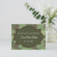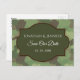 Armébröllop Spara datum-kort, Vacker armégrön bakgrund och brun kant med vit text som anger datum att spara. Ha ett armébröllop och överraska din familj och vänner med denna eleganta bröllopssvit med matchande föremål i butiken