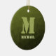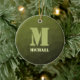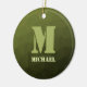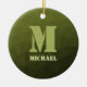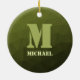 Armégrön olivgrön geometrisk nätmönster Monogram Julgransprydnad Keramik