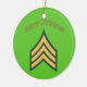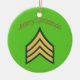 Armésergeant jul Ornament. Detta prydnadsföremål dekoreras på ena sidan med arméns sergeant insignia och ord "God jul" och på andra sidan med Jultomten med en påse av godis.