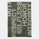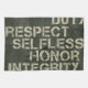 Okej, så det står: "Skyldighet, respekt, själviskhet, heder, integritet". Det här är en kökshandduk, men de får vara kreativ! Det kan vara en handduk för var du än väljer. Underbar för vilken militär familj som helst.
