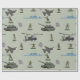 A hand drawn design featuring illustrations of army and military equipment, toy soldiers, green camouflage camo army pattern. Army pattern featuring illustrations of a tank, aircraft, helicopter and ship. A perfect design for anyone who loves the military and army related patterns. Customize the monogram and make it your own.