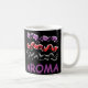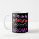 Aroma konjuserar upp fina sak vackra trädgårdar som sköljt dam med manar spädbarn och pulverkaffe för matchoklad. Black lila red designad mugg med text ord
