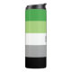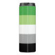 pridet flagga för aromatiska människor. Detta är en strimlad mönster av grönt, vitt, grått och svart. Ett eget namn finns på den vita rand.