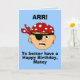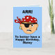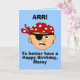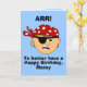 Det här söta pirat-födelsedagskortet har en pojke pirat med ett öga-plåster, bandanna och scowl. Kortet säger: "Arr! Bäst du har en grattis på födelsedagen, Matey." Inuti står det: "Eller så får jag dig att gå på plankan!" Det är perfekt för barn, särskilt pojkar som kärlek pirater och som pratar som pirat. Anpassa det genom att ändra meddelandet i mallen. Du kan också klicka på anpassa om du vill lägga till ett eget, ändra teckensnittet eller bakgrunden till färg.