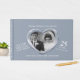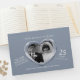 Silver bröllop-årsdagen för gästen bok i personligen party. Underbar att lägga till en personlig till speciella silver bröllop-årsdagen för party. Använda den här gästen bok så att dina gäster kan lämna meddelanden ge lycklig-paret med en unik personlig-gåva. Anpassa med lycklig par namn och foto på båda sidor i silver hjärteffektfoto ram. Grått silver hjärteffektkonst och utformning av Sarah Trett för www.mylittleeden.com