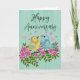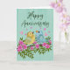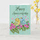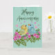Det här är ett vackert jubileumskort för ett par som firar sitt kärlek. Den har två fåglar tillsammans på blommar träd gren med hjärtan. Bakgrunden har ljusblå och grönt rand.