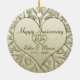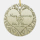 Skräddarsy denna guld- och hjärtaprydnad med det att gifta sig initialer och året.