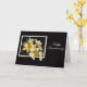 Snygg bild av gult och vit frangipani från ram, med ord "Lycklig-årsdagen". Detta arrangemang skapades av Jacqueline Sleter.