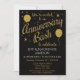 Denna roliga festliga bröllopsjubileum-inbjudan har svart bakgrund med falska guldglittrande ballonger och stjärnor. Den har en elegant och lekfull charm med en stilren kant. Ert jubileumspar kommer att älska denna stilrena inbjudan, liksom era gäster. För 5:e, 10:e, 15:e, 20:e, 25:e, 30:e, 35:e, 40:e, 45:e, 50:e eller något däremellan!