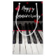 Piano tangentbord med Lycklig-årstexten och röd ros-bladen på svart. Text kan redigeras.