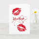 Ljusa läppstift kysser med hjärtsträng för makar i bröllop på årsdagen.
