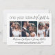 Om oväntade omständigheter har lett till att bröllopsmottagningen har skjutits upp är den första årsdagen en perfektens möjlighet att fira ett år senare. Inbjudan familj och vänner till en elegant på 1:a årsdagen party med den här snyggten, en modern 4-fotokollageinbjudan. Alla formuleringar är enkla att anpassa, inklusive citat som lyder "ett år senare gör vi fortfarande". Anpassa tiden mellan ceremonin i bröllop och årsdagen i party, oavsett om det bara är några månader eller några år. Ta med valfri information, t.ex. datum för giftermål, lövförnyelseplaner, information om party efter utresan, plats för bröllop-ceremonier, adresskod, osa, webbplats osv. (IMAGE PLACEMENT TIP: Ett enkelt sätt att centrera ett foto exakt på vilket sätt du vill är att flytta det till skörd innan det laddas upp till Zazzles webbplats.) Den moderna minimalistiska svarta och vita designen har fyra bilder av nylingarna, trendig handskrivet manusgrafi och chic-skrivmaskinens stil-typografi. Vare sig du gick, hade ett mindre miniminivå eller mikro-bröllop, eller så var du tvungen att lägga om din speciella dag i firande på grund av ett omfattande pandemirelaterat uppskov, desto lyckligt nog när party fortfarande kan komma igång. Grattisar till bruden och brudgummen!