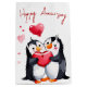 Cute vattenfärgspenguiner med röda hjärtan på vit bakgrund för par- eller maka-årsdagen